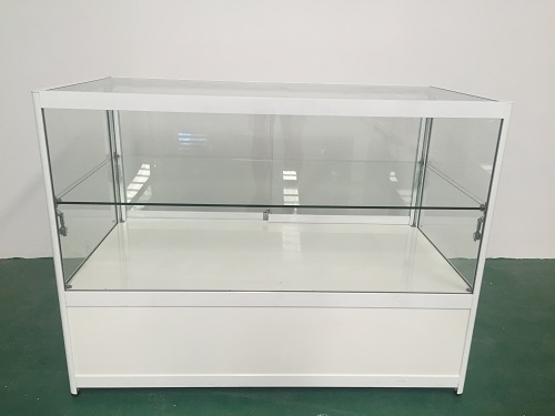 This illuminated glass merchandise counter is perfect for jewelry stores or retail outlets. These display cases feature a simplistic design with an adjustable shelf to showcase your products in the proper limelight. The retail merchandise counter has 4 LED lights on the sides that offer a highly efficient method of showing off your items. Additionally, the display cases include two sets of sliding doors for the showcase and storage area, which come with locks and keys to keep your items safe from theft. The merchandise counter has an easily accessible switch on the inside of the doors to turn the LED lights off when not in use. Add this component as a stand-alone curio cabinet or combine it with other units from the series to create a coordinated design with a seamless configuration!