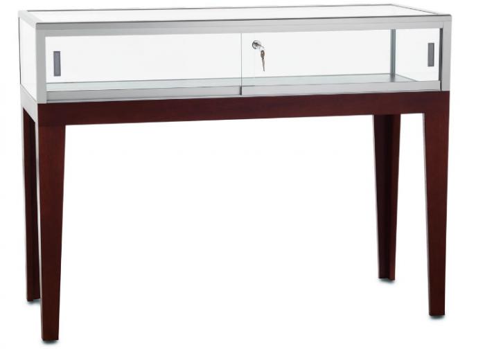 19.6 LED Display Case w/Cabinet Base, Adjustable Shelves & Locking Hinged Door -Gold