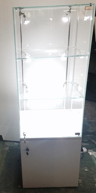 20" Glass Display Case w/Hinged Door, 2 Fixed-Height Shelves, Frameless - Silver